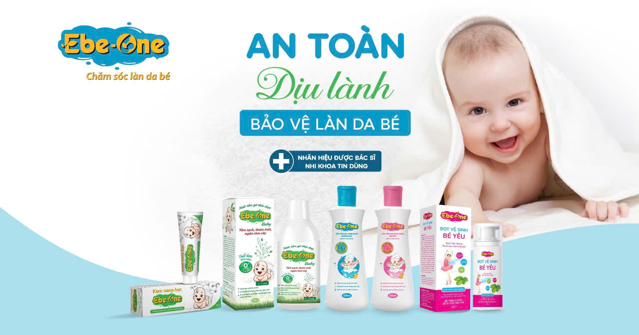 Ebe-One: Nhãn hiệu chuyên dòng sản phẩm chăm sóc và bảo vệ làn da em bé từ O+ tuổi: Nước tắm gội thảo dược Ebe-One, Sữa tắm gội hàng ngày Ebe-One, Bọt Vệ Sinh Bé Yêu - chăm sóc vùng kín cho bé, Kem nano bạc Ebe-One: rôm sảy, mụn nhọt…